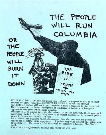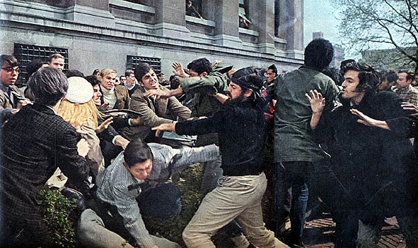 In Columbia's defense, it must be acknowledged that the proposed site was just a small part of the park, mostly a rather unusable rocky slope that wasn't giving anybody much use the way it was, and public parks are used all over the city for private purposes, as at the Tavern on the Green in Central Park, that don't even have a public component. The use of violence to protest parks policy as if it were a moral issue on a par with the Vietnam War was a wild 1960's excess that nobody in their right mind would consider today. Both the university and the community nowadays wisely seek cooperation and consensus, not conflict, in dealing with each other. May the bad old days never return.