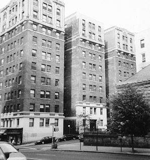 "So, reluctantly, we went hunting for another apartment. We found it in the Columbia University neighborhood on Morningside Heights, only a block from Riverside Park... Best of all, we could see the Hudson River from the bedroom windows, which faced west. The street was wide and sunny, and the buildings would have looked perfectly at home on a quiet residential block in London. Each one had some sort of distinctive feature: an elegant cornice, a sculptured frieze, an arch of decorative brickwork over the entrance. One had what appeared to be a small pyramid rising from the rooftop and another had a stone lion face grinning above the door. Ours had a mosaic floor in the entryway and two urns filled with bedraggled pink petunias. In its day, we decided, this must have been a rather stylish neighborhood." (p.32)